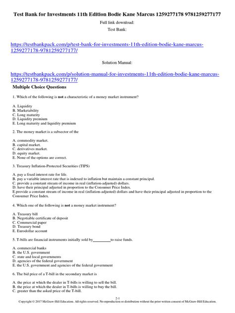 Reading Online Investments Test Multiple Choice Bodie Kane PDF mobipocket ManyBooks